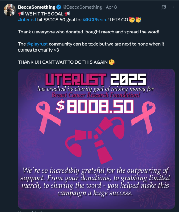 I have 2 events lined up for 2025. Uterust event for BCRF again, our goal is $8008.50, and another one towards the end of the year for an undecided mental health charity.