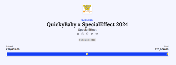 QuickyBaby set a goal of £10,000 for SpecialEffect