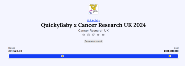 QuickyBaby also fundraised for Cancer Research UK