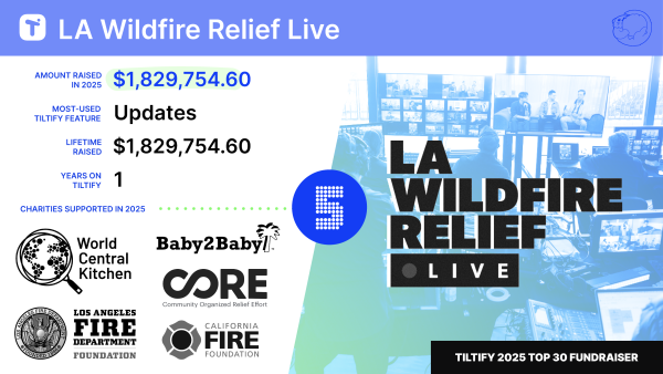 When devastating wildfires struck Los Angeles in January 2025, the California-based creator community mobilized immediately. Within days of the call going out, dozens of creators mobilized on Tiltify, turning grief and urgency into one of the fastest grassroots fundraising efforts the platform has ever seen.