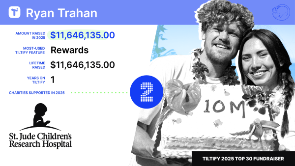 Ryan’s campaign is a powerful example of how storytelling, creativity, and community can drive real impact, earning him the #2 spot on the Tiltify Top 30 Fundraisers of 2025.